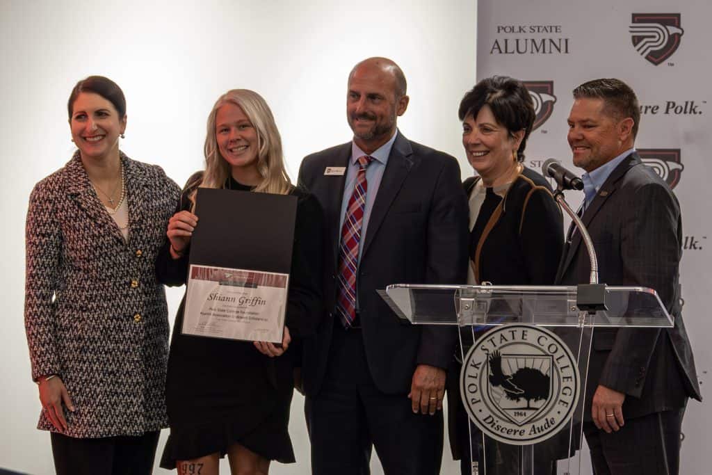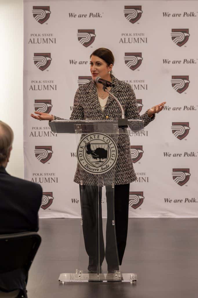 Polk State President Dr. Angela Garcia Falconetti spoke to the significance of the Distinguished Alumni network, calling the group some of the strongest leaders in Polk County and beyond.